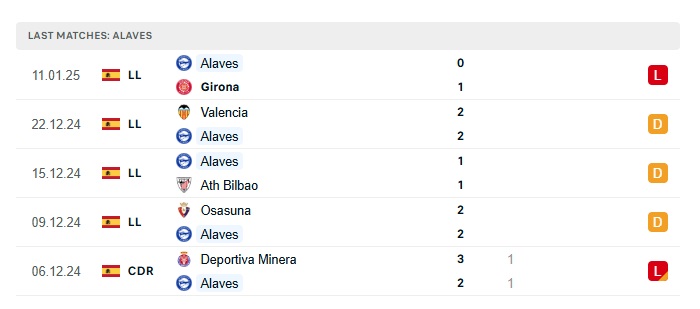 • Phong độ gần đây Alaves
