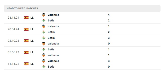 • Kèo tỷ số H2 Real Betis vs Valencia: 0-0