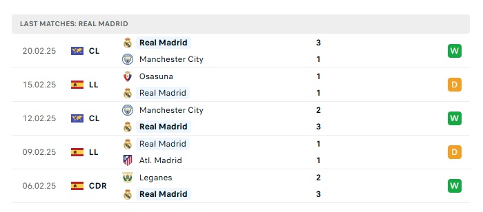 - Phong độ gần đây Real Madrid