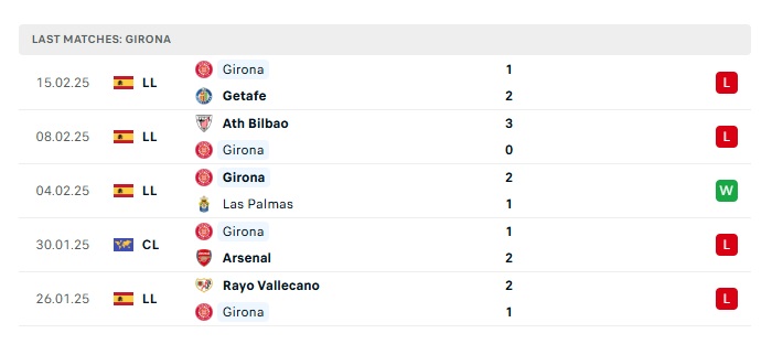 - Phong độ gần đây Girona