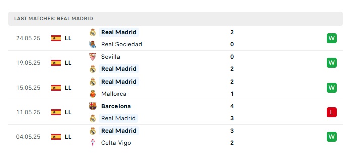 - Phong độ gần đây Real Madrid