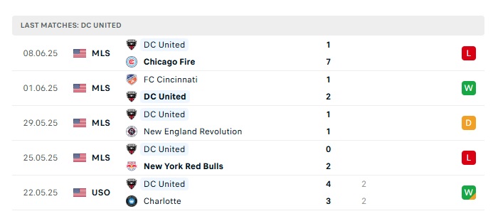 - Phong độ gần đây D.C United