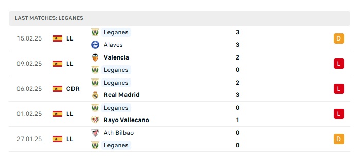 • Phong độ gần đây  Leganes