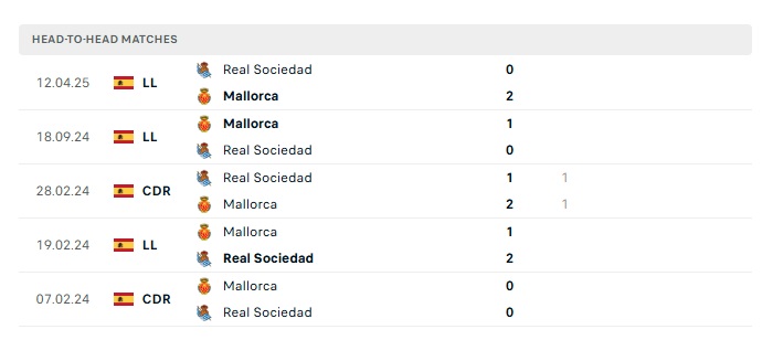 Lịch sử đối đầu Real Sociedad vs Mallorca