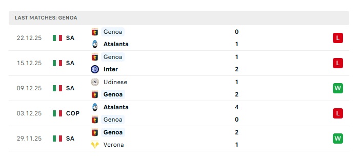 • Phong độ gần đây Genoa