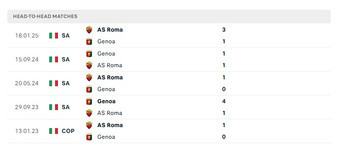 Phong độ gần đây Roma vs Genoa