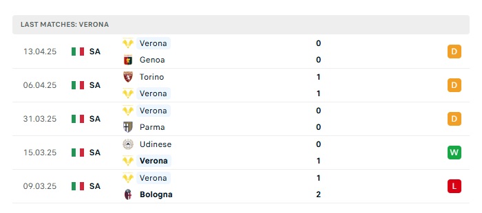 - Phong độ gần đây Verona