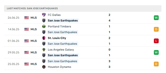 Phong độ gần đây San Jose EQ  vs LA Galaxy