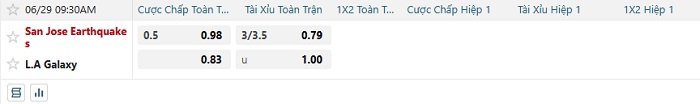 Bảng tỷ lệ kèo bóng đá hôm nay San Jose EQ vs LA Galaxy