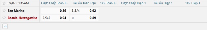 Bảng tỷ lệ kèo bóng đá San Marino vs Bosnia & Herz