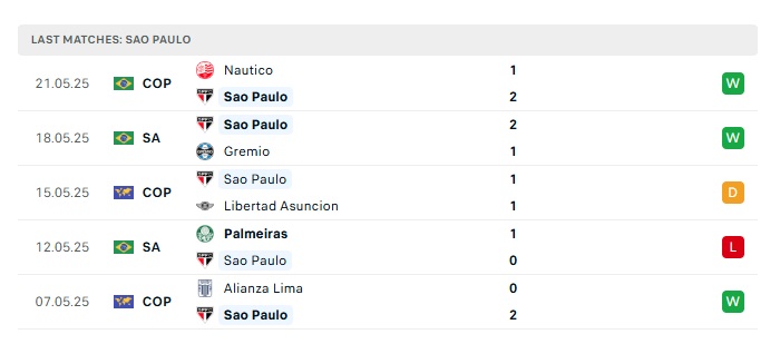 • Phong độ gần đây Sao Paulo
