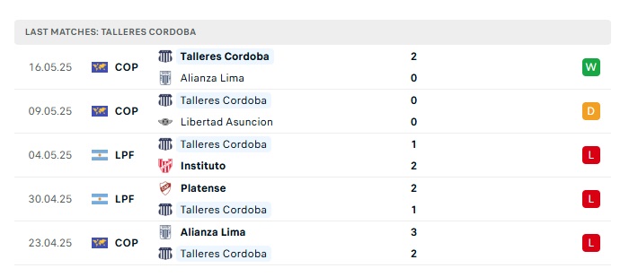 • Phong độ gần đây Talleres