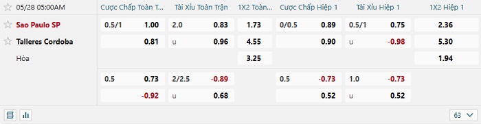 Soi kèo châu Á, kèo Sao Paulo vs Talleres