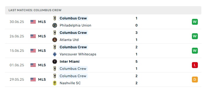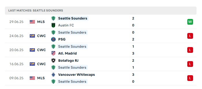 Phong độ gần đây Seattle Sounders  vs Columbus Crew