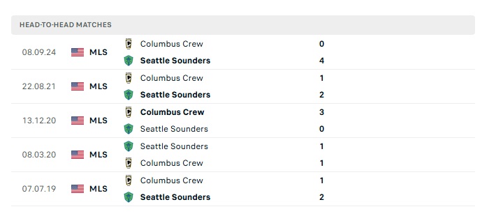 Lịch sử đối đầu Seattle Sounders vs Columbus Crew