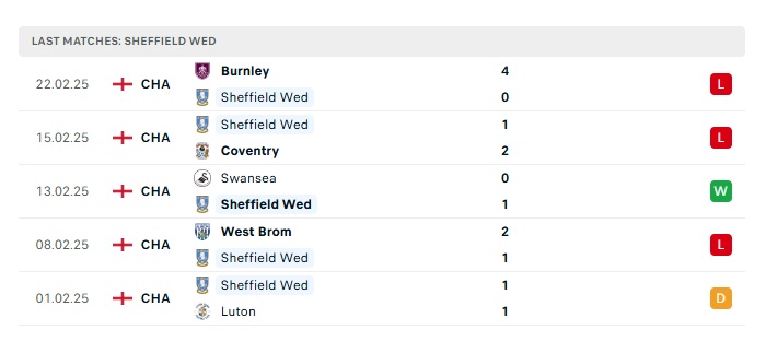 • Phong độ gần đây Sheffield Wed