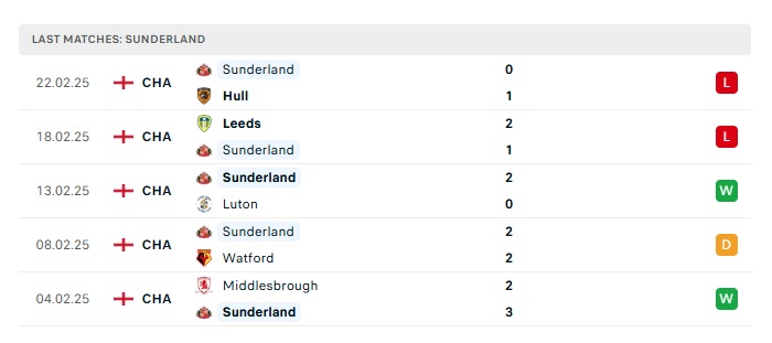 Phong độ gần đây Sheffield Wed vs Sunderland