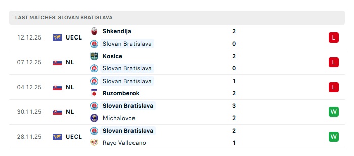 - Phong độ gần đây Slovan