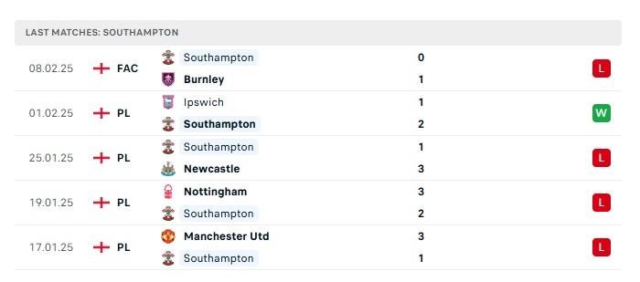 - Phong độ gần đây Southampton