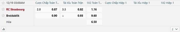 Bảng kèo bóng đá Strasbourg vs Breidablik