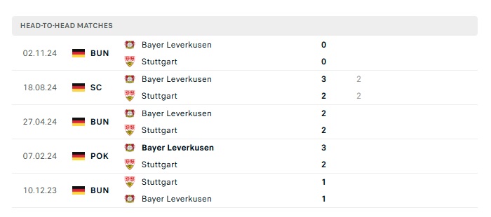 Lịch sử đối đầu Stuttgart vs Bayer Leverkusen