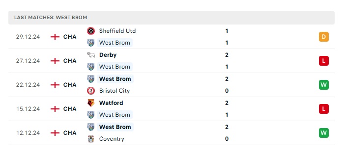 • Phong độ gần đây West Brom