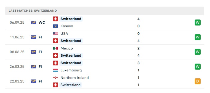 • Phong độ gần đây Thụy Sỹ