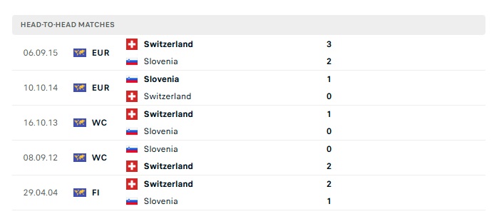 Lịch sử đối đầu Thụy Sỹ vs Slovenia