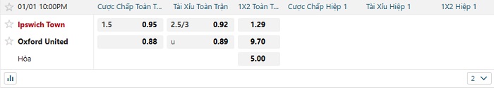 - Dự đoán tỷ số hiệp 1: Ipswich 1 – 0 Oxford