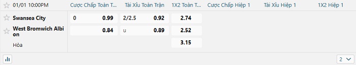 Tip kèo Châu Á full trận Swansea vs West Brom