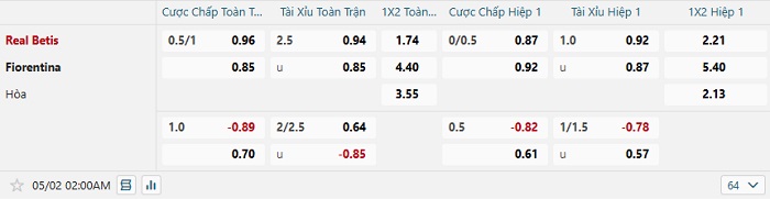 Tip kèo Châu Á hiệp 1 Betis vs Fiorentina
