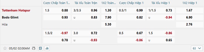 Tip kèo Châu Á full trận Tottenham vs Bodo Glimt