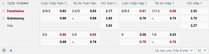 Tip kèo Châu Á hiệp 1 Fenerbahce vs Galatasaray