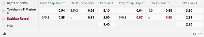 Tip kèo Châu Á full trận Yokohama F. Marinos vs Kashiwa Reysol