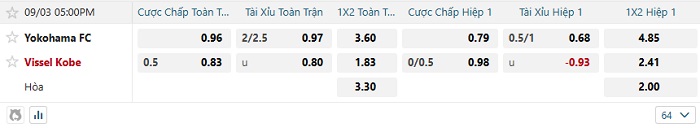 Tip kèo Châu Á full trận Yokohama FC vs Vissel Kobe