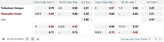 Tip kèo Châu Á hiệp 1 Tottenham vs Newcastle