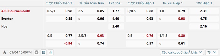 Tip kèo Châu Á hiệp 1 Bournemouth vs Everton