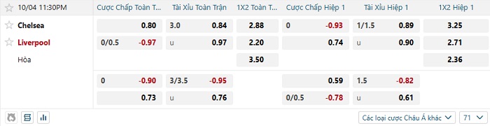 Tip kèo Châu Á hiệp 1 Chelsea vs Liverpool