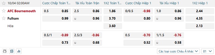 Tip kèo Châu Á full trận Bournemouth vs Fulham