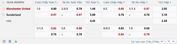 Tip kèo Châu Á hiệp 1 Man United vs Sunderland
