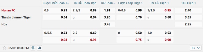 Tip kèo Châu Á full trận Henan vs Tianjin Jinmen
