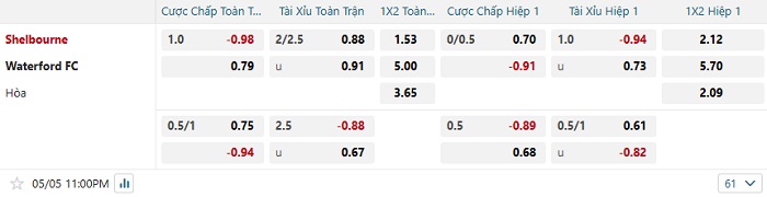 • Dự đoán tỷ số hiệp 1: Shelbourne 1 – 0 Waterford