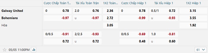 Tip kèo Châu Á full trận Galway vs Bohemians