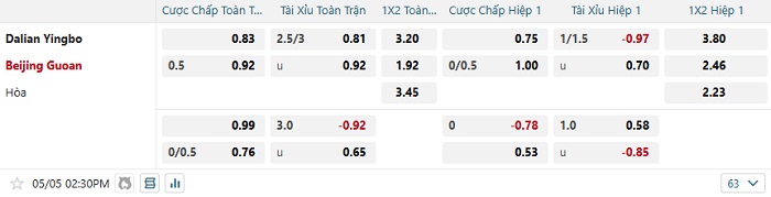 Tip kèo Châu Á hiệp 1 Dallan Yingbo vs Beijing Guoan