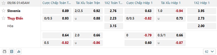 Tip kèo Châu Á full trận Slovenia vs Thụy Điển