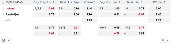 Tip kèo Châu Á hiệp 1 Iceland vs Azerbaijan