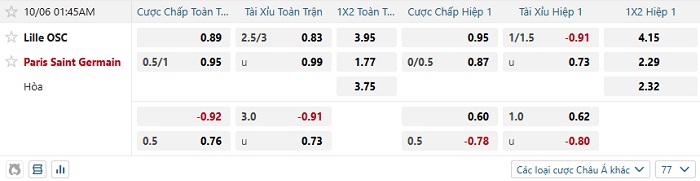 Tip kèo Châu Á hiệp 1 Lille vs PSG