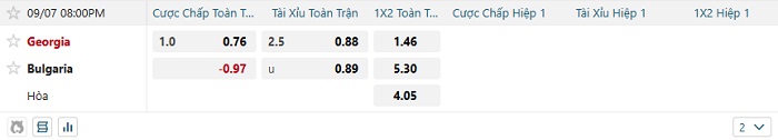 Tip kèo Châu Á full trận Georgia vs Bulgaria