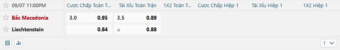Tip kèo Châu Á hiệp 1 Macedonia vs Liechtenstein