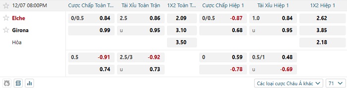 Tip kèo Châu Á hiệp 1 Elche vs Girona